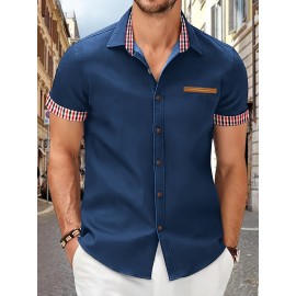 Men's Casual Plaid Pattern Color Block Button Up Shirt - Thin Long Sleeve with Chest Pocket for Summer, Spring, and Fall