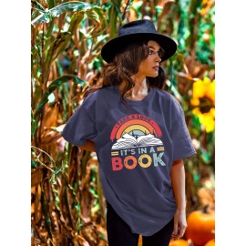 Cartoon Character & Letter Print T-Shirt, Casual Short Sleeve Top For Spring & Summer, Women's Clothing