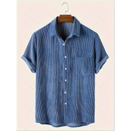 Men's Ethnic Style Geometric Pattern Casual Shirt, Button Front Short Sleeve Top, Men's Clothes For Daily Wear/Party