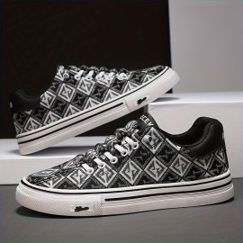 Men's Trendy Chic Panda Pattern Skateboard Shoes, Comfy Non Slip Lace Up Rubber Sole Sneakers For Men's Outdoor Activities